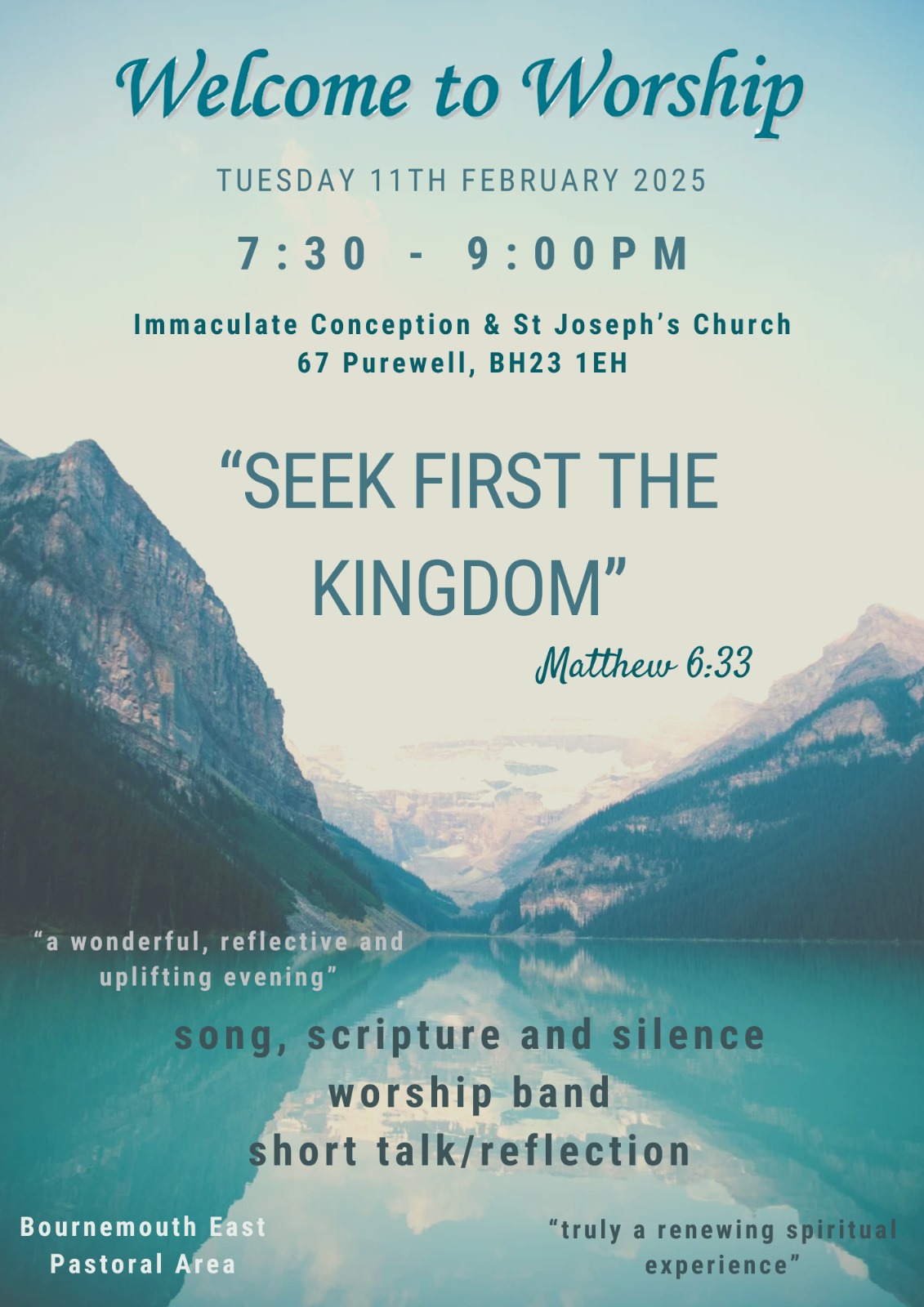 “Welcome to Worship evenings have something for everyone”