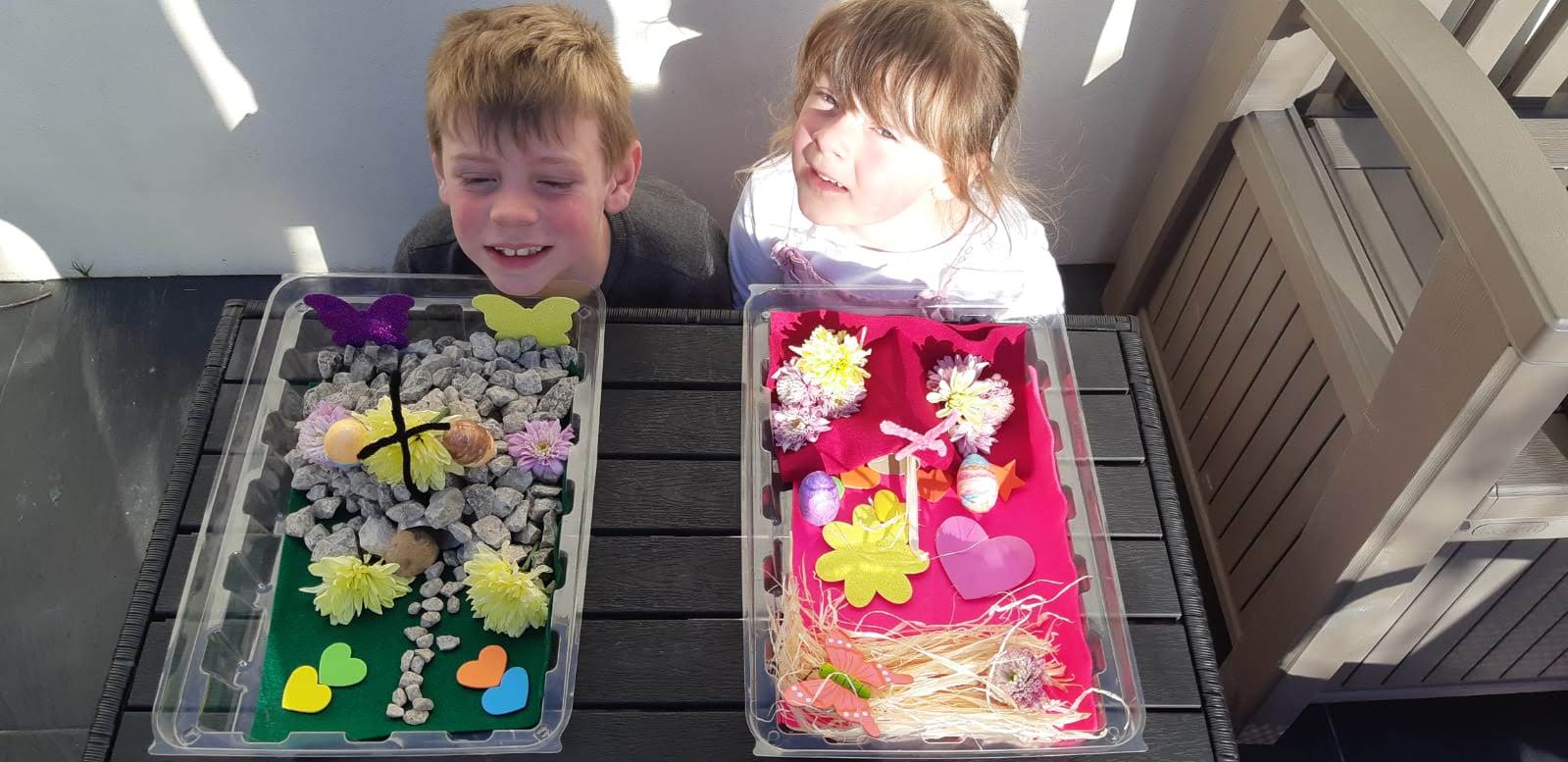 St Joseph’s First Holy Communion children have been busy creating their own Easter Gardens and are delighted to share these with you now. Well done, everyone – they are great!
